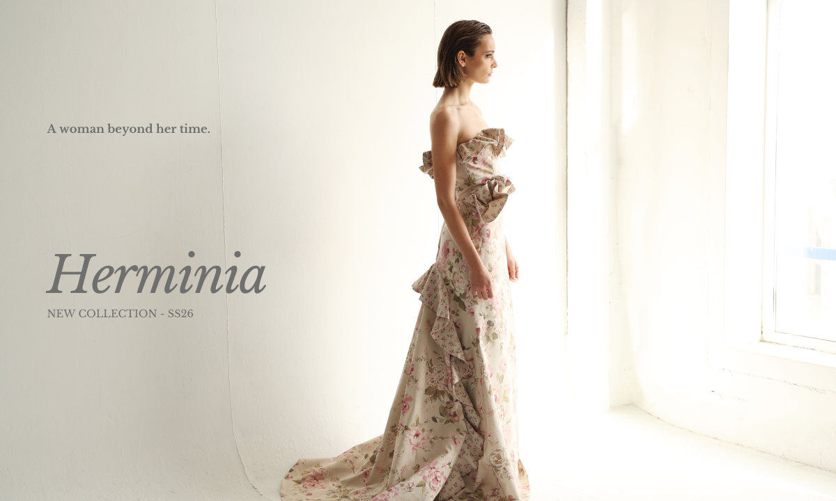 Las líneas depuradas y limpias, casi arquitectónicas, evocan a una mujer que no necesita exceso. Los vestidos de gala florales en panamá de algodón reinterpretan la herencia desde una mirada contemporánea, mientras losvestidos midi en popelín de algodón, crepé y tafetán aportan estructura, ligereza y movimiento.