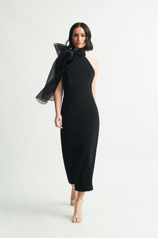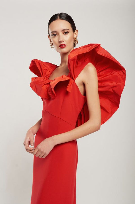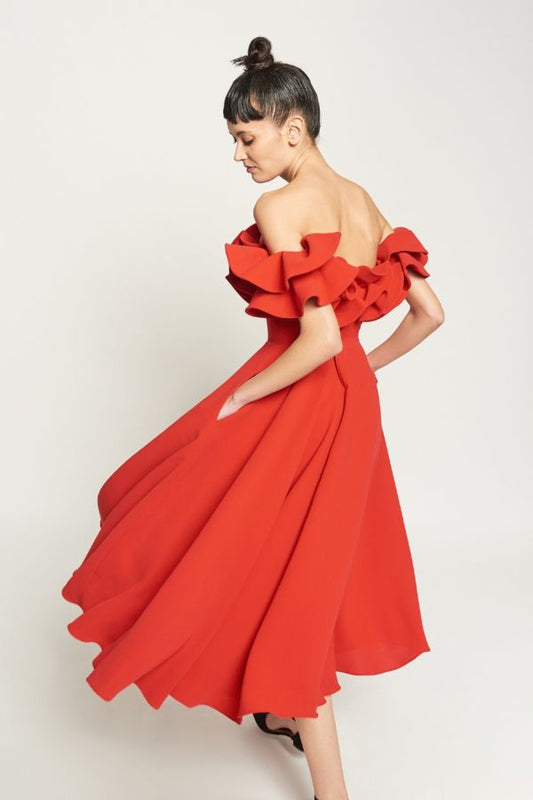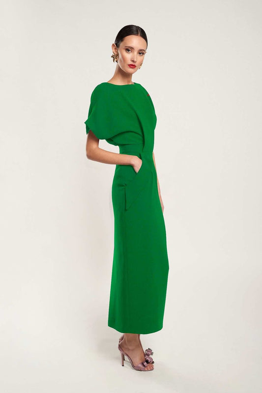 Reúne vestidos y conjuntos en colores atemporales como rojo, marino o lila, con cortes envolventes, siluetas sofisticadas y tejidos nobles que se adaptan a distintos cuerpos y estilos.