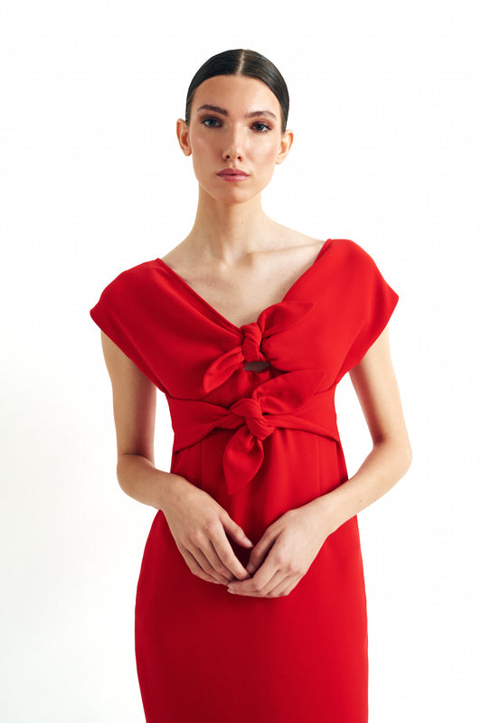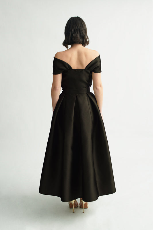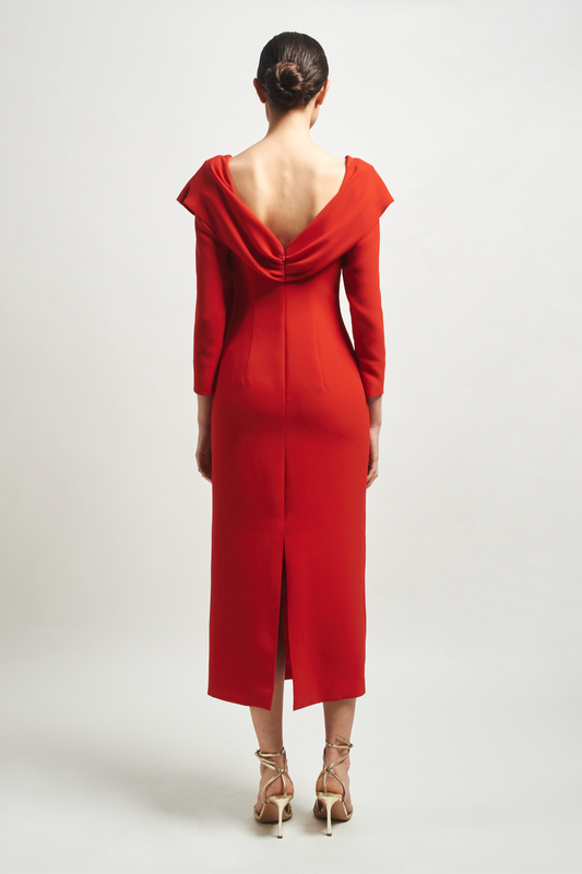 Cada vestido de madrina Boüret combina arquitectura y delicadeza, con cortes impecables que realzan la figura sin perder naturalidad. Tejidos nobles como el crepé, el satén y el panamá de algodón se transforman en siluetas envolventes, con mangas estructuradas, cinturas definidas y faldas que fluyen con ritmo y elegancia.