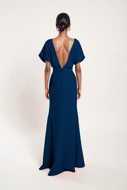 La paleta cromática es profunda y refinada: azul noche, verde esmeralda, burdeos, gris perla o rosa empolvado, tonos que reflejan distinción y serenidad. Los detalles —botonaduras forradas, drapeados, hombreras suaves o espaldas esculturales— están pensados para crear un look de madrina atemporal y distinguido, a la altura del momento.