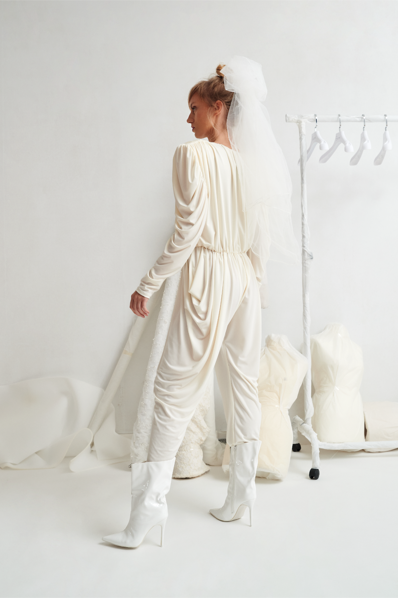 If you are a groundbreaking bride, the Rigolleto jumpsuit is perfect for getting married or for opening the dance.