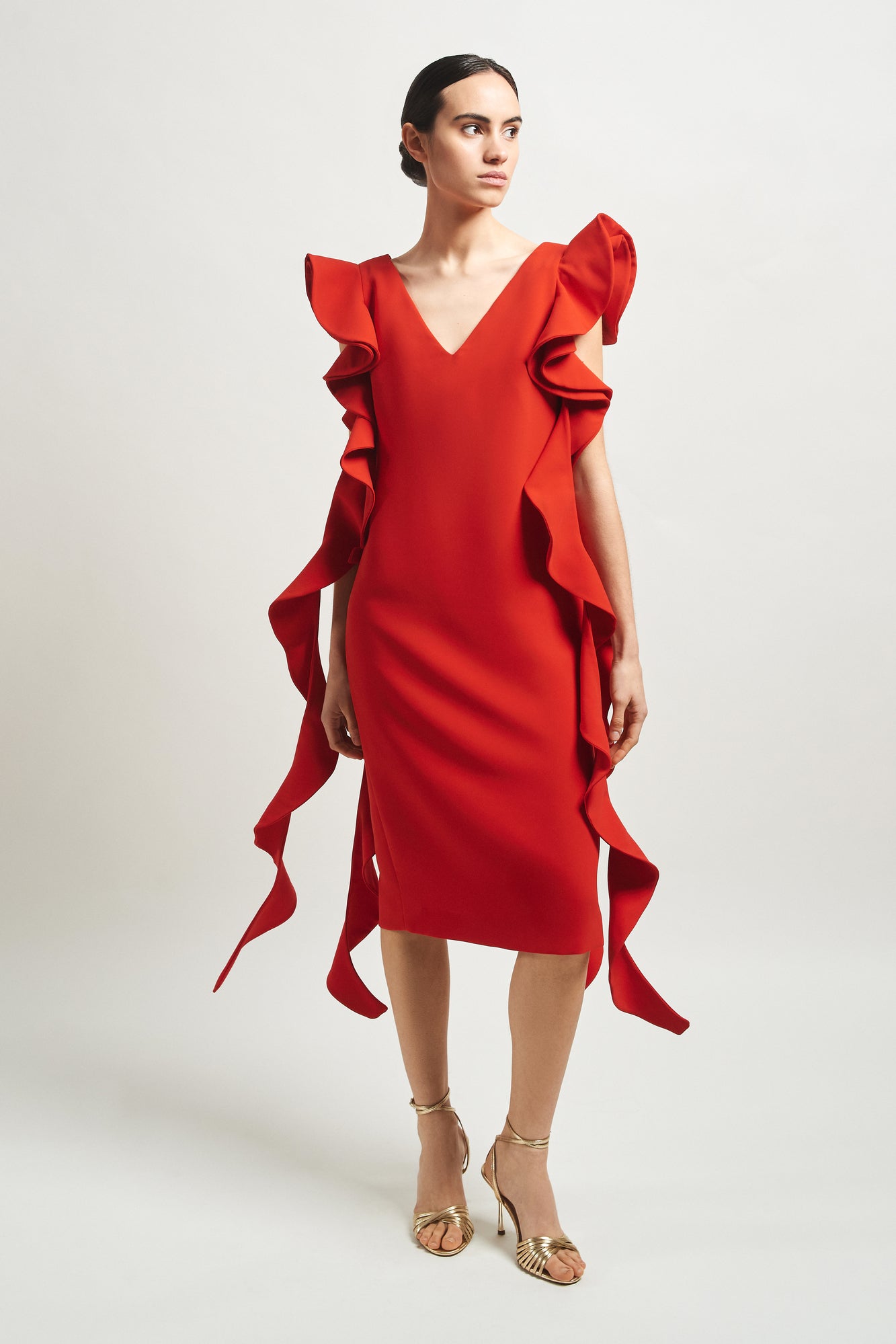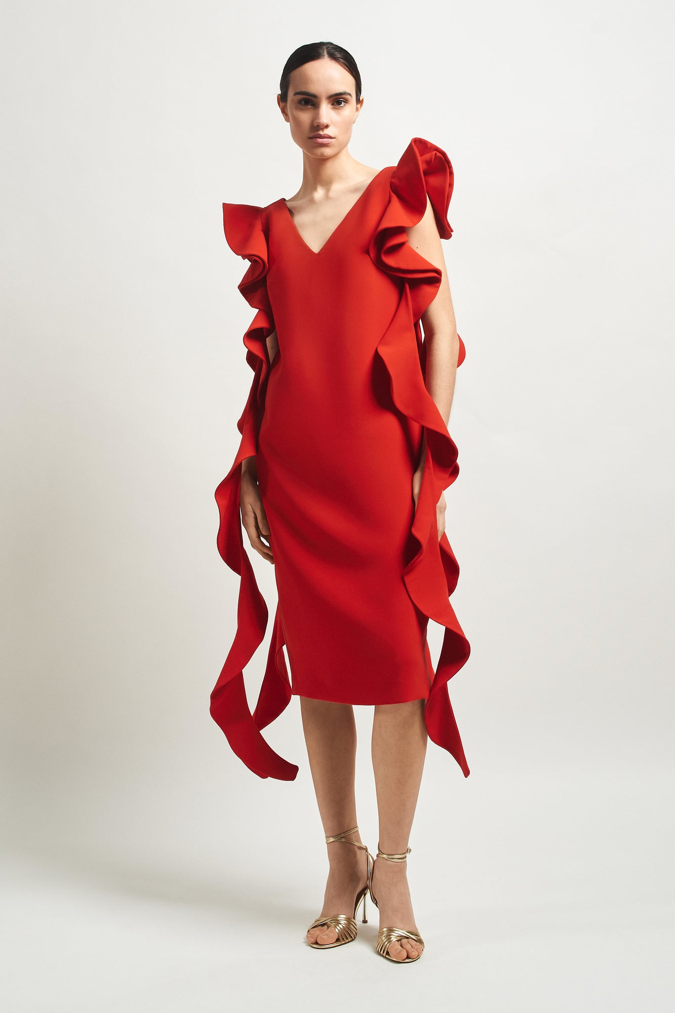 Made with our exclusive haute couture crepe, the Amanda dress can be washed at home, although special care is recommended: