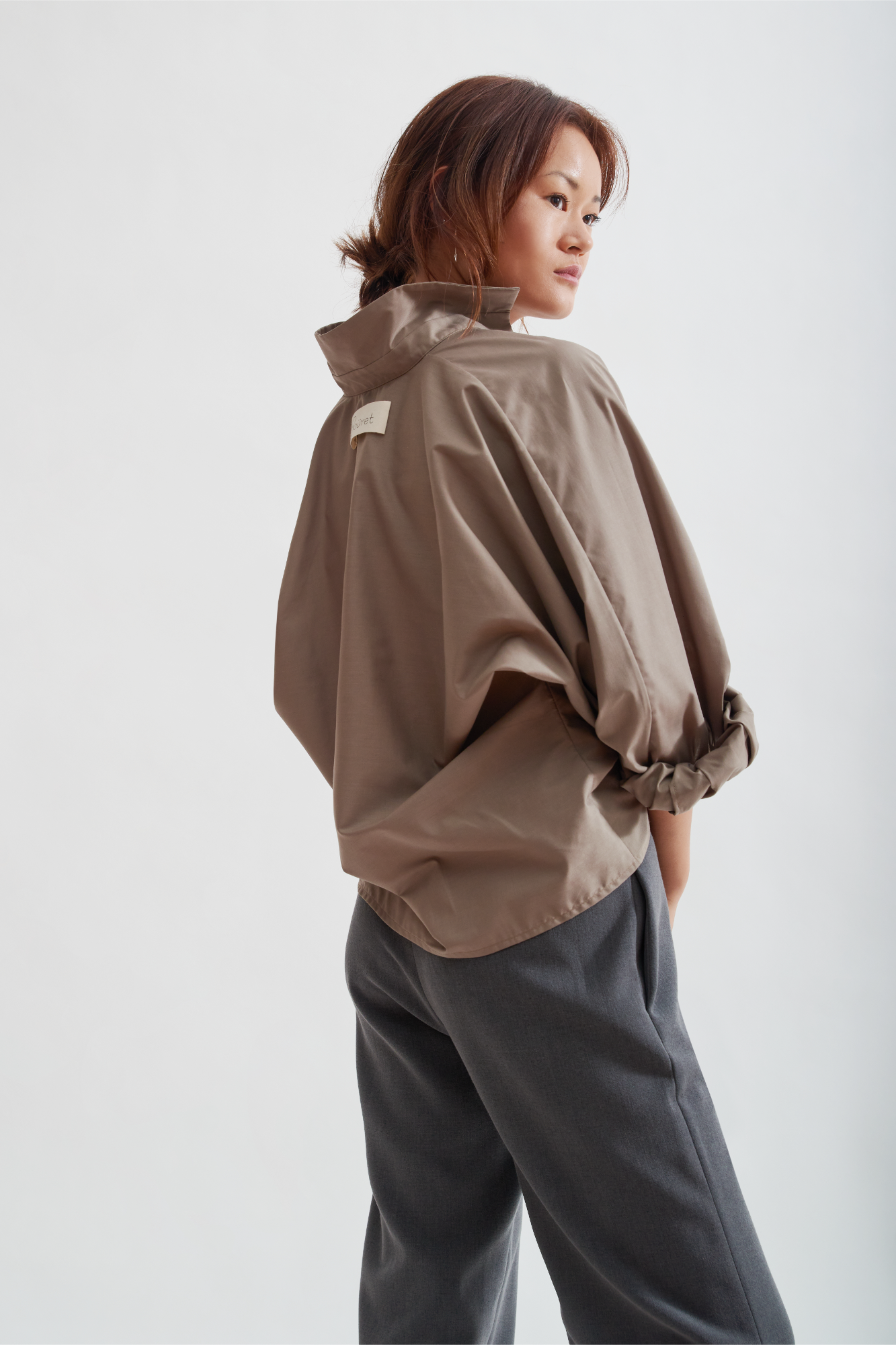 Camisa de popelín de algodón top con etiqueta de marca en la espalda. De mangas murciélago y toque oversize.