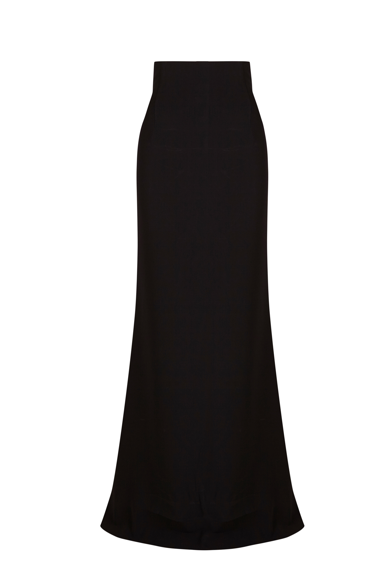 Falda larga negra con cintura alta. Hecha en nuestro crepé de alta calidad en color negro. Hecha con nuestro exclusivo crepé de color negro.