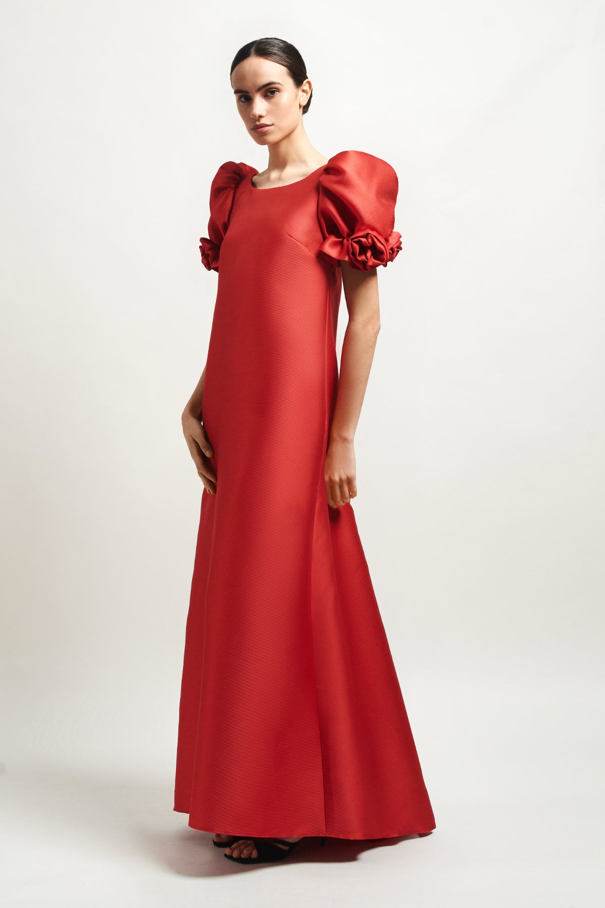 De línea A, pero con alma de exclamación, este vestido de tussord rojo