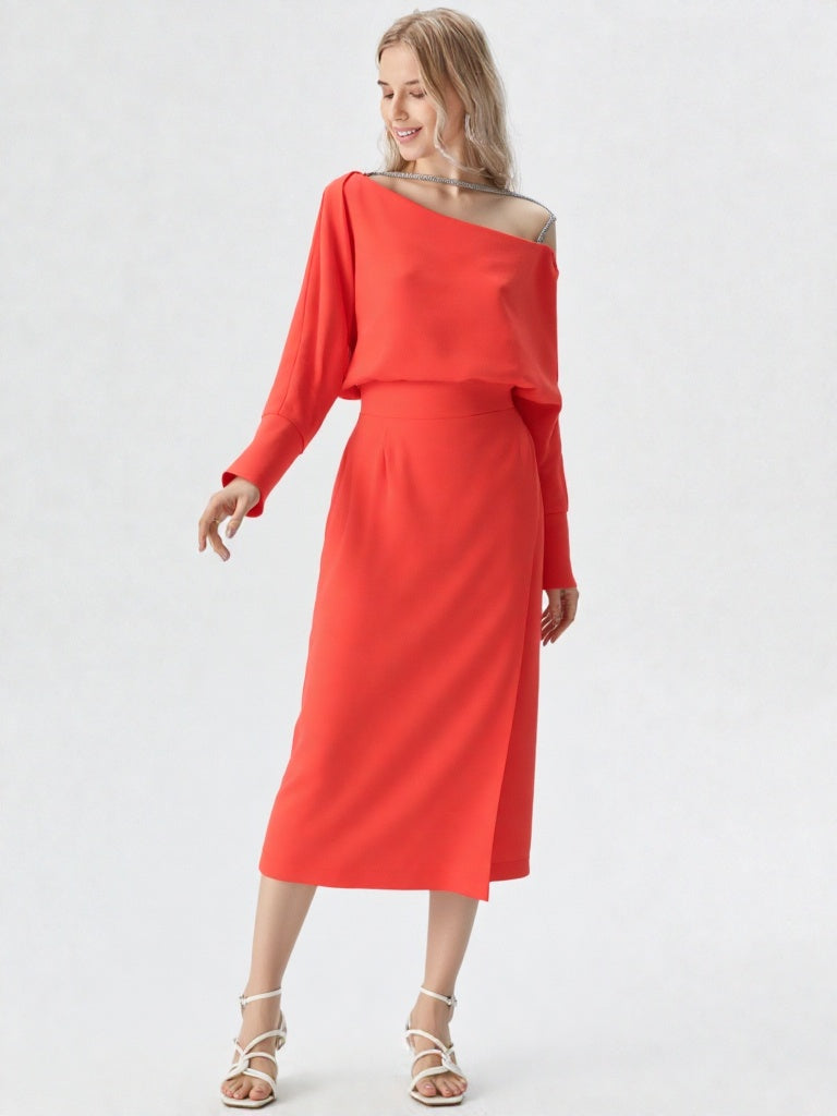 Forro: 100% 100% poliéster con forro de rayón. Lavar a mano con agua fría. No usar secadora. Planchar del revés a baja temperatura o aplicar vapor sin contacto directo. Limpieza profesional recomendada para eventos